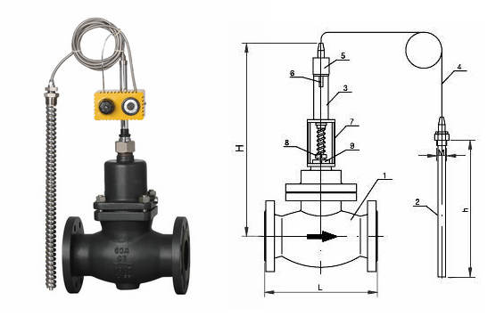自力式溫度控制閥利用感溫液體不可壓縮的原理,而實現溫度自動調節,有加熱型和冷卻型兩種,當被控介質溫度升高,控制閥門關閉(加熱型);當被控介質溫度升高,控制閥門開啟(冷卻型)。